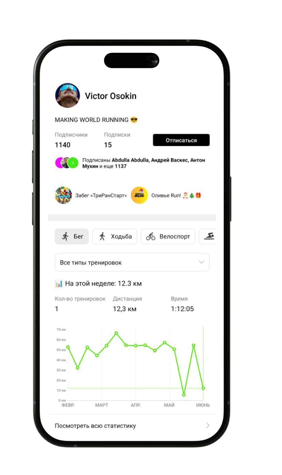 участвовать в совместных забегах.